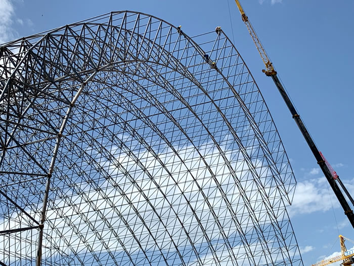 (2)网架加工前应对现场尺寸进行复测,确认无误后方可进行加工、安装;网架制作、运输、安装应遵守《空间网格结构技术规程》JGJ7-2010、《钢网架德惠螺栓球节点》JG/T 10-2009、《钢网架德惠螺栓球节点用高强度螺栓》 GB/T 16939-2016、《德惠钢结构德惠工程德惠施工规范》 GB50755-2012、《德惠钢结构德惠工程施工质量验收标准》 GB50205-2020。